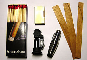 Das Brandende der angeschnittenen Cigarre wird schräg ca. 1 bis 2 cm über die Flamme eines Streichholzes oder Gasfeuerzeuges gehalten und zunächst angewärmt, bis der äußerste Rand ringförmig glimmt, wobei die Cigarre ständig gedreht wird.